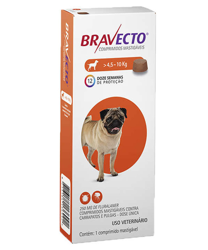 O Antipulgas e Carrapatos MSD Bravecto para Cães de 4,5 a 10 kg é um primeiro comprimido mastigável, indicado para o tratamento