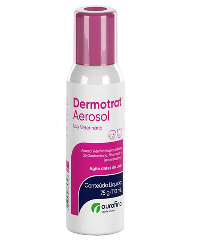 O Anti-inflamatório Ouro Fino Dermotrat Aerosol, é um agente antibacteriano, antifúngico e anti-iinflamatório de uso tópico para afecções cutâneas que acometem cães e gatos.