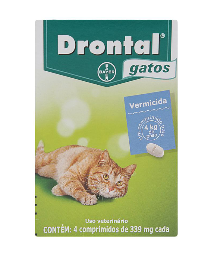 facilidade na administração. Drontal Gatos® contém quatro comprimidos de 339 mg cada, que trata entre 3 e 4 kg de peso corpóreo
