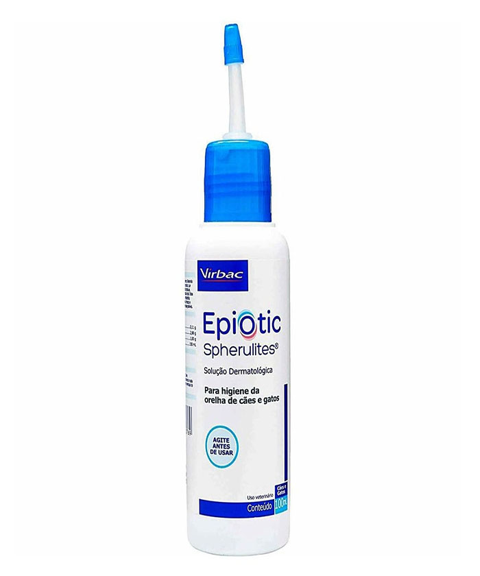 Uso tópico. Agitar antes de usar. Áreas acessíveis da orelha devem ser limpas com um algodão embebido em Epiotic® Spherulites™.
