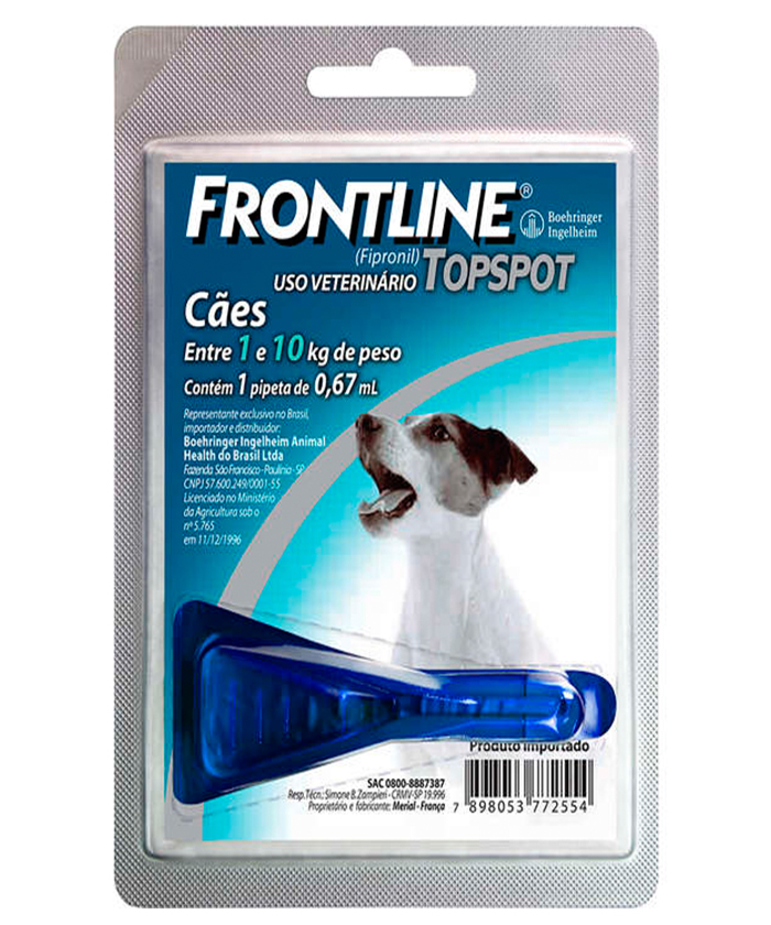 Antipulgas e Carrapatos Frontline Top Spot para Cães de 1 a 10 Kg .Ideal para os cães caseiros, que vivem em ambientes com baixo risco de infestação.