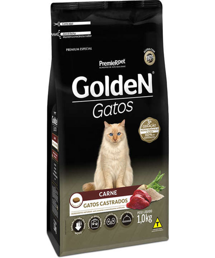 Especialmente formulada para atender às necessidades dos gatos castrados, a Ração Seca PremieR Pet Golden Gatos Adultos Castrados Carne auxilia na prevenção da obesidade e no cuidado com o trato urinário, garantindo uma nutrição ótima e saudável. Procedimento cada vez mais recomendado pelos médicos veterinários, a castração promove inúmeros benefícios, mas também alterações fisiológicas que exigem alguns cuidados extras com a dieta do seu gato.