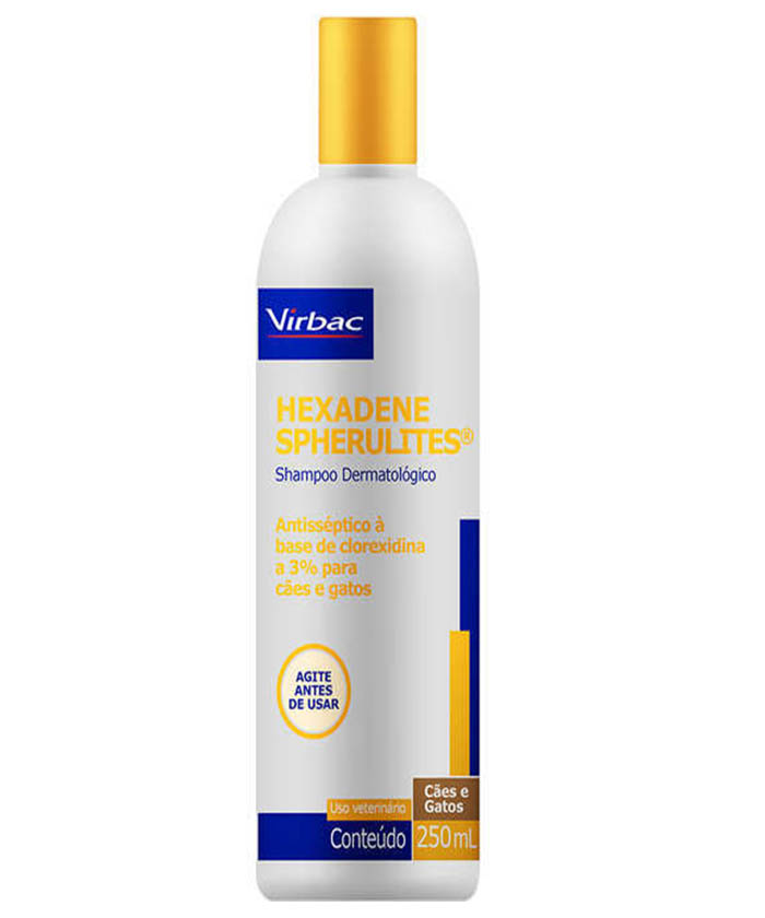 O Shampoo Dermatológico Virbac Hexadene Spherulites para Cães e Gatos pode ser utilizado 2 vezes por semana, até o