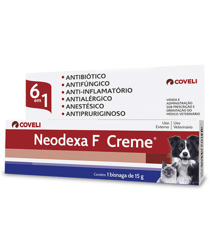 Neodexa F Creme é indicado para caninos, felinos e eqüinos em toda a lesão de pele infectada ou não. Lesões pruriginosas onde é
