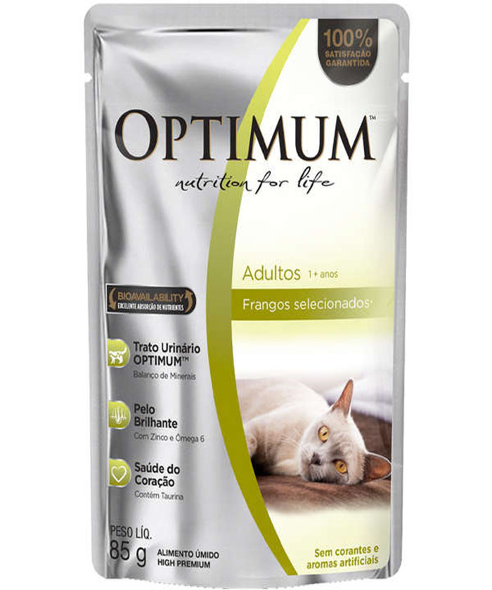 A Ração Optimum Sachê Frango para Gatos Adultos foi desenvolvida usando as melhores matérias primas, proteínas cuidadosamente selecionadas e nutrientes essenciais.