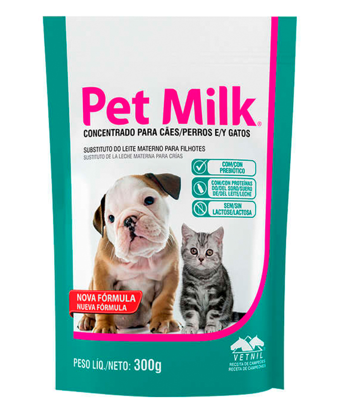 O Suplemento Vetnil Substituto do Leite Materno Pet Milk Sachê é enriquecido com as vitaminas, minerais e aminoácidos. Fórmula
