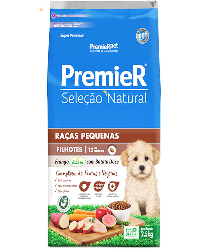A Ração Premier Pet Seleção Natural Frango Korin com Batata Doce Cães Filhotes Raças Pequenas é mais uma novidade da Premier