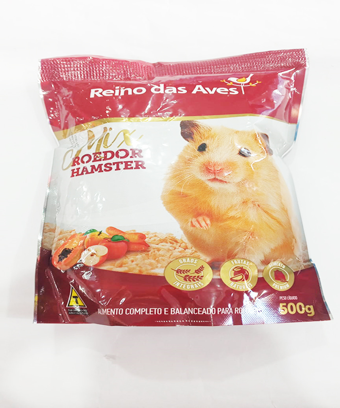 A ração para Hamster contém grãos integrais e frutas naturais, sendo componentes essenciais para a saúde dos roedores. Além disso,