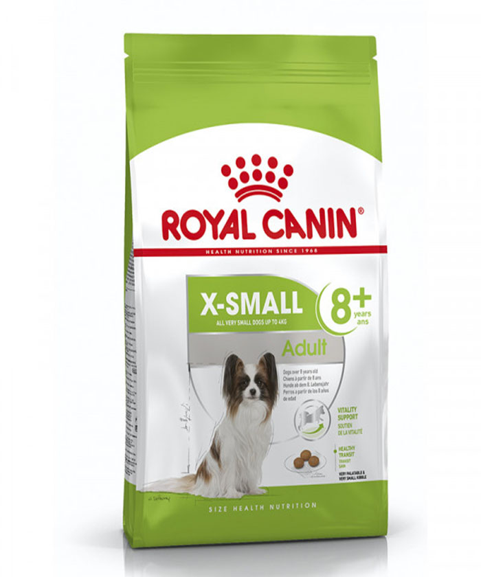 A Ração Royal Canin X-Small Adulto 8+ para Cães Adultos e Idosos de Porte Miniatura contém nutrientes que ajudam a manter a vitalidade nos cães de raças muito pequenas, frente os primeiros sinais de envelhecimento. possui complexo patenteado de antioxidantes. Os cães de raças muito pequenas são propensos à constipação intestinal. Um fornecimento balanceado de fibras favorece o trânsito intestinal e, em conjunto com proteínas de elevada digestibilidade, contribui para a boa qualidade das fezes.