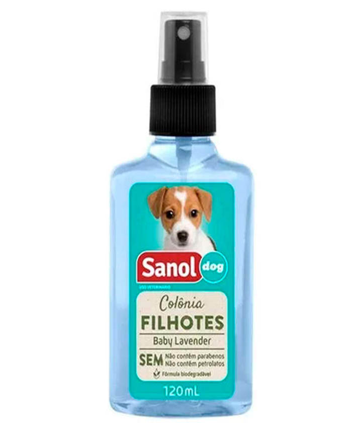 Após o banho, vaporize a Colônia Sanol Dog por todo corpo do seu pet a uma distância de 15 cm, protegendo olhos, narinas, boca e
