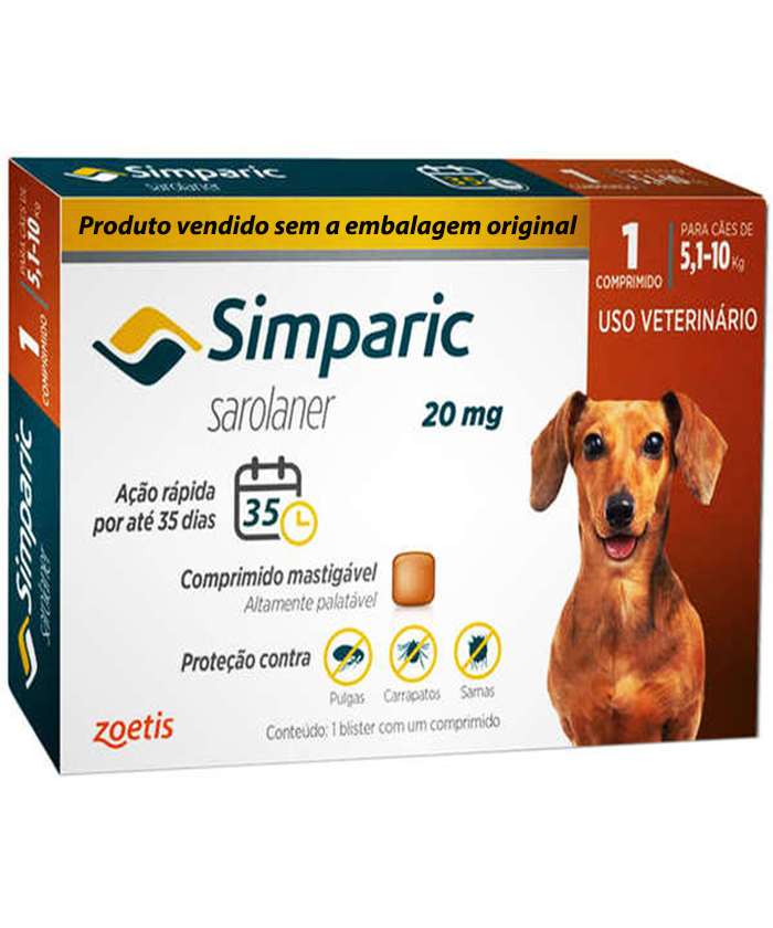 Antipulgas Simparic 20 mg para cães 5,1 a 10 kg – Zoetis
