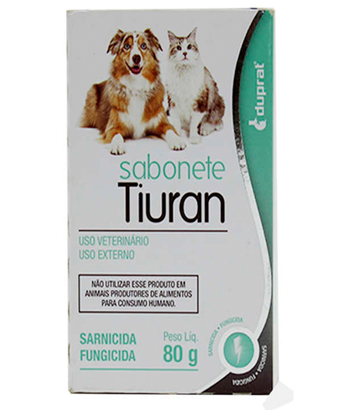 O Sabonete Sarnicida Duprat Tiuran para Cães e Gatos é um potente fungicida, efetivo contra micoses cutâneas, principalmente as Tinhas (fungos dos gêneros Microsporum e Trichophyton).